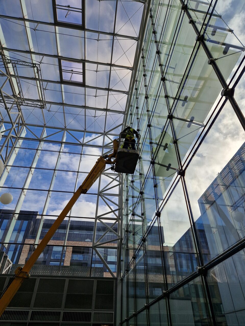 At the client’s request, we conducted a survey to measure the tension forces within the wire frame of the atrium glass structure. The aim was to compare current tension values with those recorded during previous surveys.