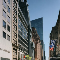 The scene of the action is 52nd Street, between Fifth and Madison Avenues. Here, in the middle of Manhattan, the Austrian Cultural Forum has taken its place in a building that more than stands out from its surroundings. This is due to its scale, which is of pocket-handkerchief dimensions, and to its idiosyncratic façade architecture. At the same time the building demonstrates to perfection how even the smallest spaces can be used with efficiency and originality: each of the 23 floors is hardly larger than a single room.