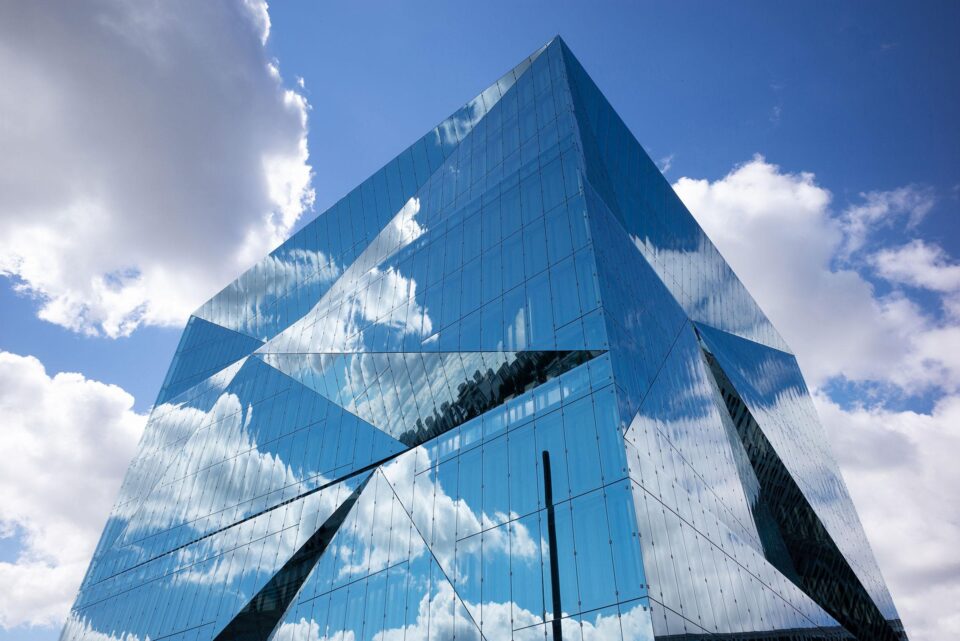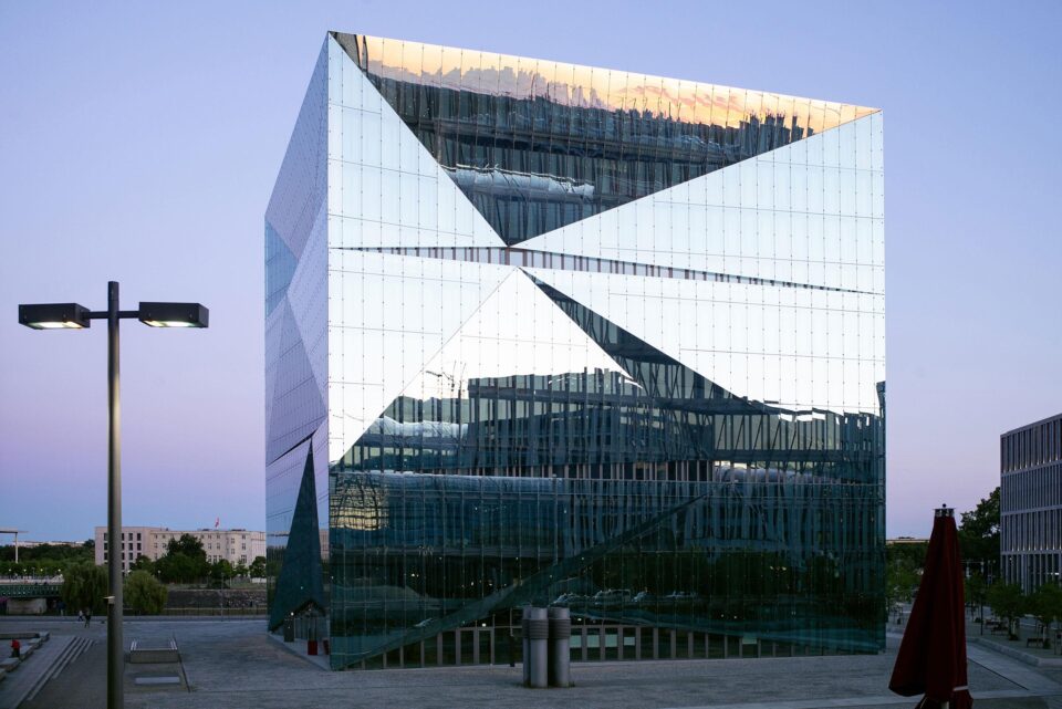 During the construction of the office building Cube in Berlin, the exterior facade was intended to be executed with clamp holders. High demands were placed on fall protection glazing as well as the installation situation of overhead glazing. For architectural reasons, the impact-resistant panels were to be made of two-layer laminated safety glass (LSG) with two different PVB films and a coating towards the PVB film.