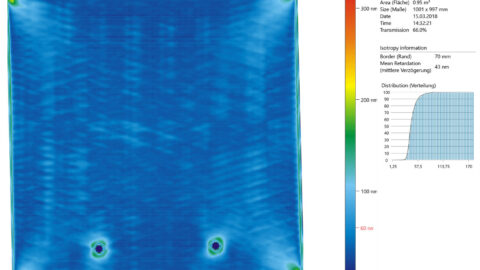 - Scanning of each individual glass pane = visualization of the distribution of anisotropy in the glass.