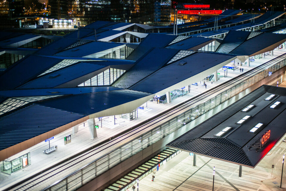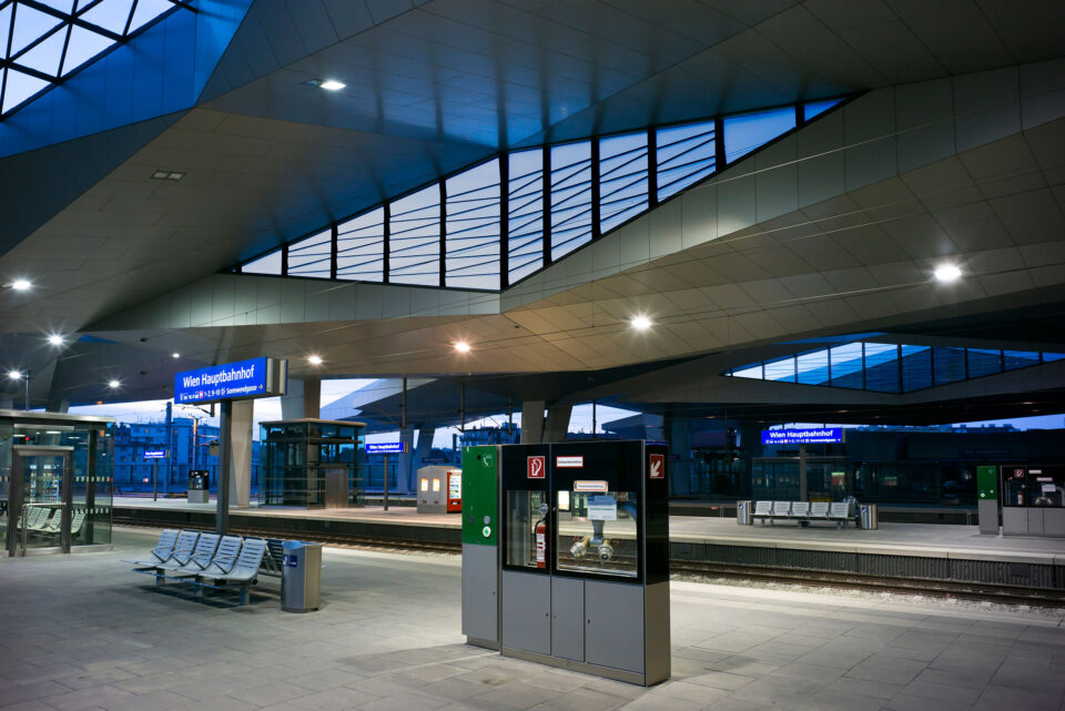 The platform roofs at the new central Railway Station in Vienna were equipped with façade and roof glazing by GIG.
