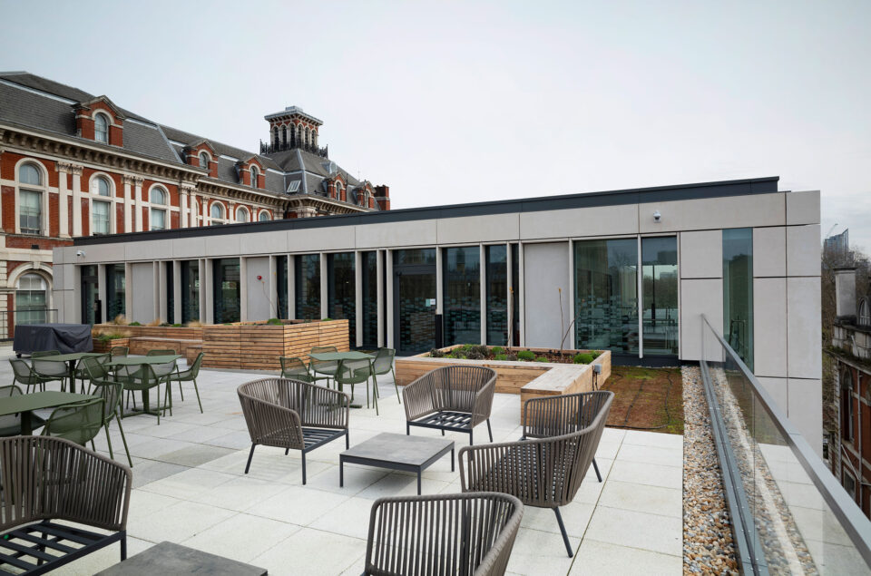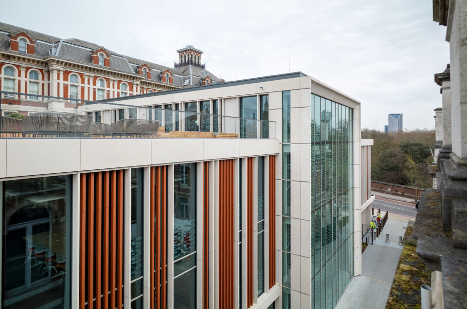 Directly on the Thames between Westminster Bridge and Lambeth Bridge, on the opposite side of the Palace of Westminster, the London Institute for Healthcare Engineering has been established, designed as a training and research building.