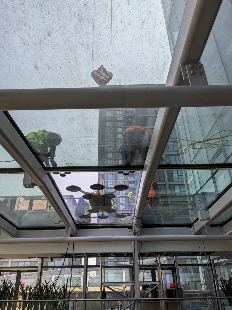 These replacements often involve complex access requirements, utilising Mobile Elevating Work Platforms (MEWPs) and Spider Cranes. Our team carries out each installation with meticulous planning and expert coordination to minimise disruption to the client’s operations.