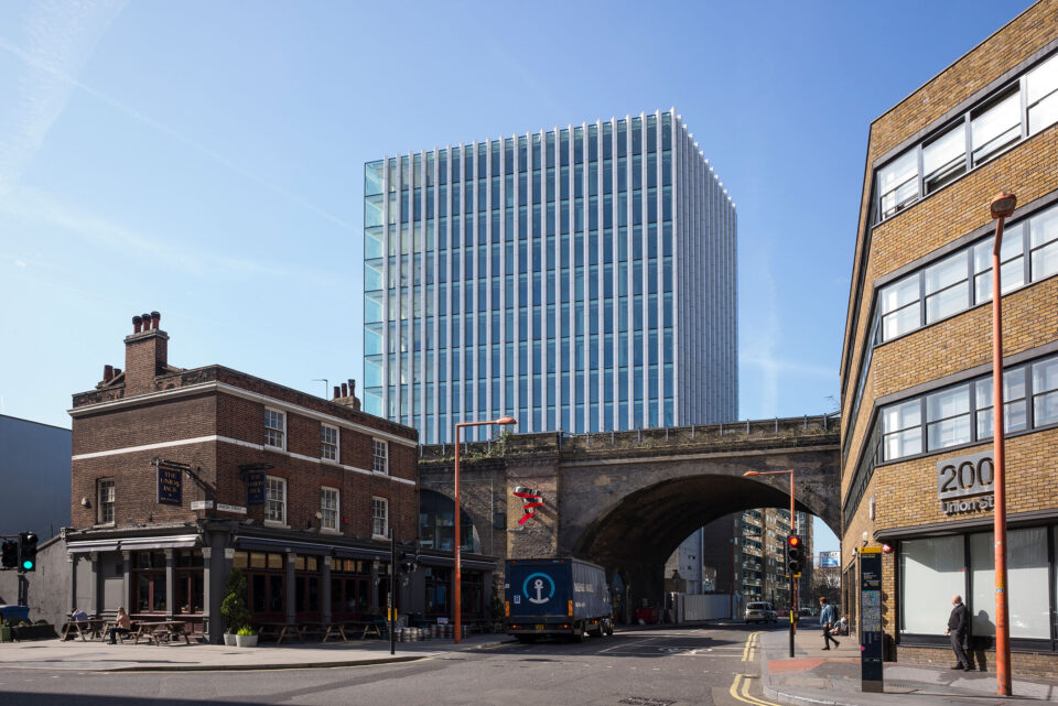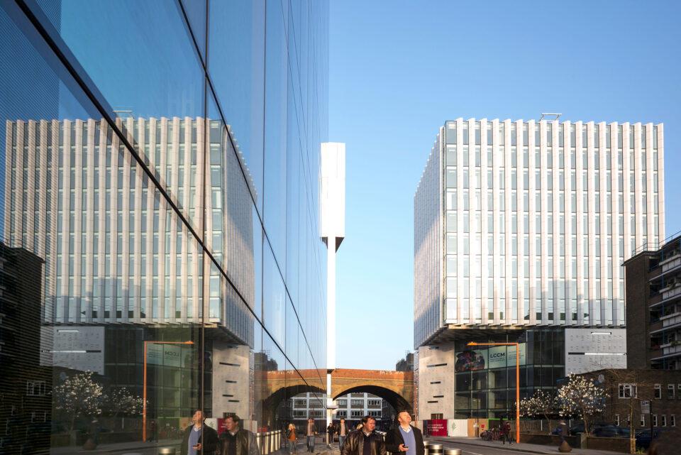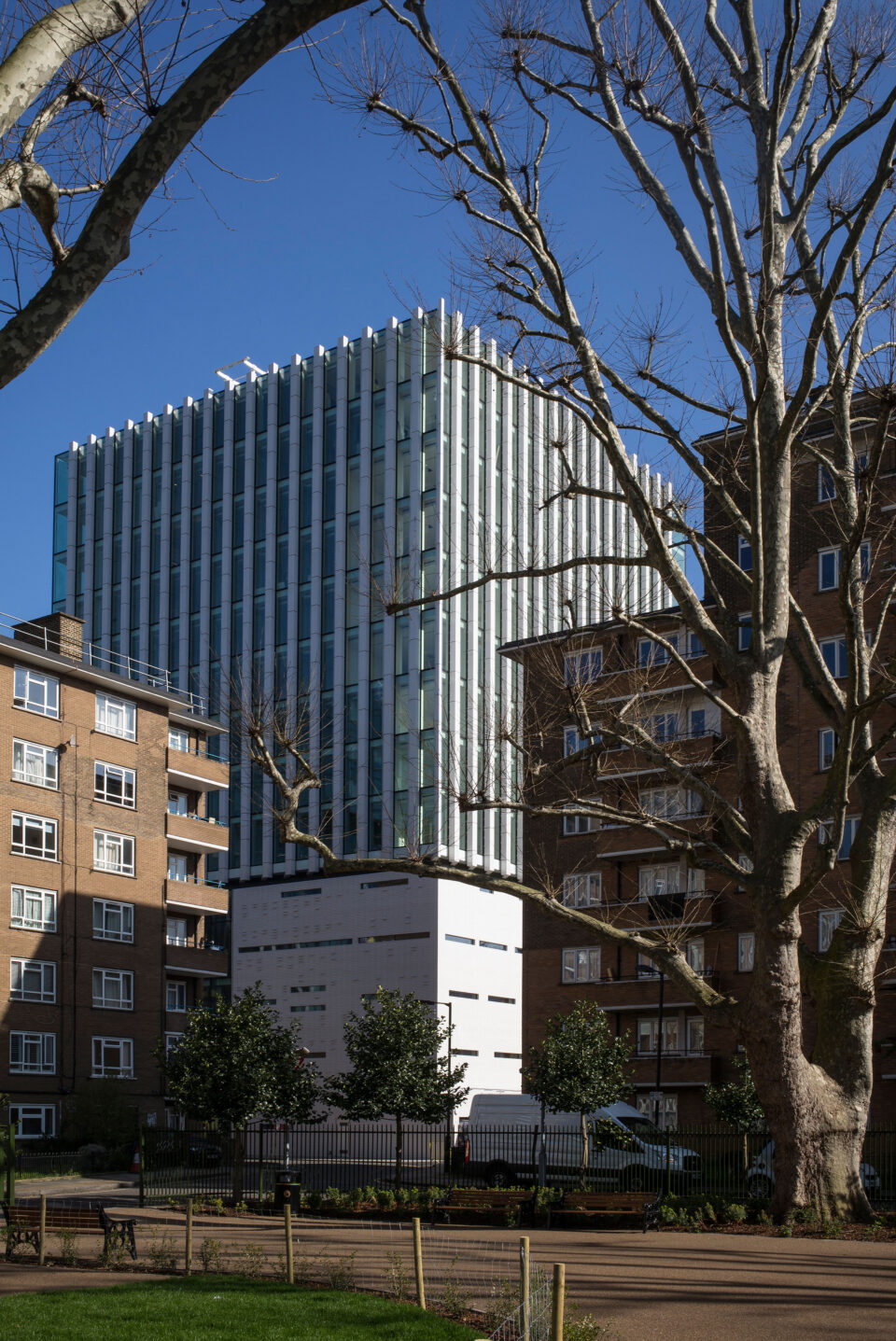 The luxury apartment building, designed by SPPARC Architecture, rises to a height of 44 metres over 14 storeys, with the lower four floors housing the “London College of Contemporary Music.”