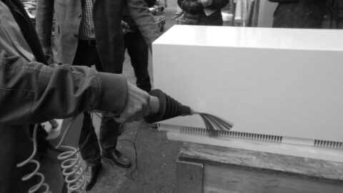 To assess the quality of the enamel and the substructure, pendulum impact tests according to CWCT TN75 were conducted. The test object was struck by a sandbag with a defined falling height and inspected for damage. Subsequently, the surface was examined for damage using a voltmeter. This allowed us to assure our customer of a flawless implementation. Incidentally, this procedure is also used in the construction of containers for food, where an intact surface is essential.