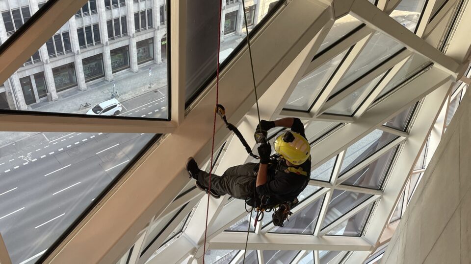 Advanced access methods including rope access, platforms, and drones for high-level operations