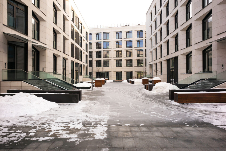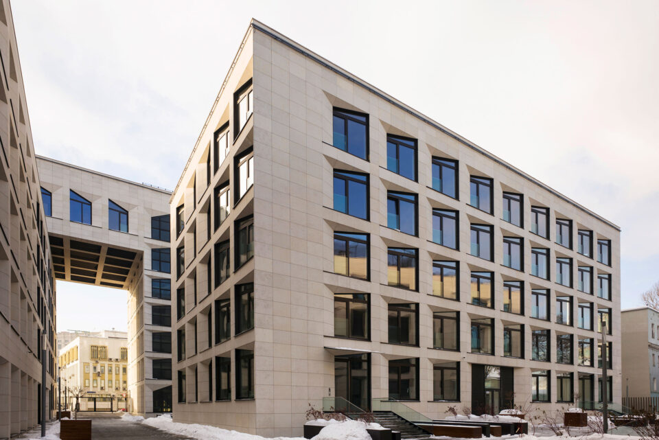 GIG wurde mit der Lieferung von 600 Stück 3-teiligen Holz-Aluminium-Fenstern von Internorm beauftragt. Ein besonderes Augenmerk lag auf den Oberlichten, die größtenteils gemäß EI30 Brandschutz-Zertifizierung ausgeführt sind. Hierzu musste das neu entwickelte Profilsytem von Internorm in Österreich und Russland getestet und zertifiziert werden.
