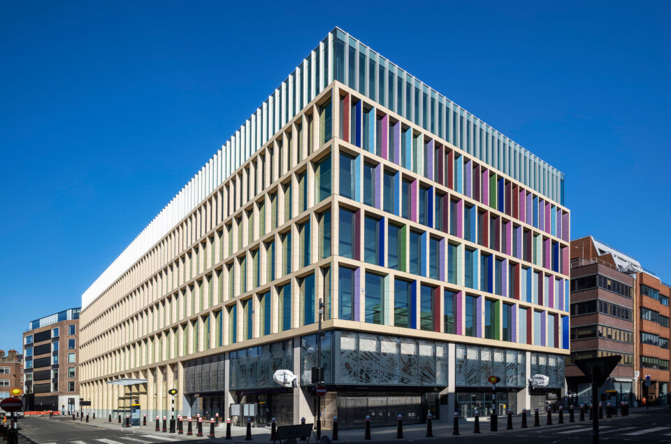 Über der neuen Crossrail Station Farringdon (East Ticket Hall) entstand ein 6-geschoßiges Bürogebäude, das neben Büros im Ergeschoß auch Platz für diverse Geschäfte bietet.