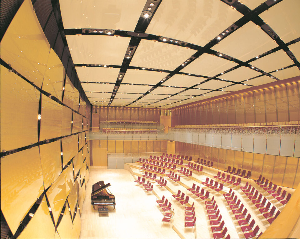 Die beweglichen Sonderkonstruktionen von GIG verleihen dem “Magna Auditorium” eine einzigartige Flexibilität. Problemlos verwandelt sich der Konzertsaal in ein Tagungszentrum, ein Kino oder einen Ballsaal. Verarbeitet wurde hochwertiges Glas in verschiedenen Stärken, das teilweise mit Blattgold belegt ist. Durch computergesteuertes Schwenken der Glaselemente an der Dirigentenwand lässt sich eine optimale Akustik erzeugen. Stimmungsvolle Lichteffekte ergeben sich durch ein eigens entwickeltes Beleuchtungssystem, das in den Fugen zwischen den Glaselementen installiert ist. Mit allen erfolgten Tests, Musterbauten und Koordinationen gilt dieses Projekt international als eine Glanzleistung von GIG.