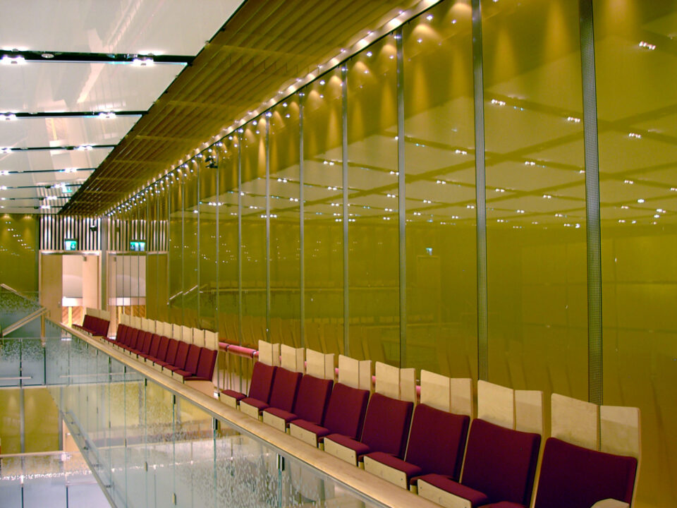 Das Haus ist eine Adresse ersten Ranges. Im Rahmen aufwendiger Renovierungsarbeiten wurde das Gebäude des Wiener Musikvereins um einen unterirdischen Zubau erweitert. Mehrere Konzert- und Veranstaltungssäle entstanden in den Untergeschoßen. Neben der Glasdecke im “Hölzernen Saal” stammt die gesamte Innenverkleidung des “Gläsernen Saals” von GIG. Eine enorme Herausforderung, denn die Glasverkleidungen der Seitenwände, der Orchester- und Dirigentenwand sowie der Brüstungen und Decken mussten nicht nur höchsten optischen Ansprüchen, sondern zugleich auch allen Anforderungen an die Raumakustik entsprechen.