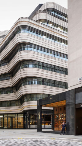Die Umgebung von Almaty, Kasachstan ist geprägt von hohen Bergen. Sogar in Almaty selbst ragt der Kok-Tjube mit 1.070 m über das Stadtgebiet und auch das Umland wird von Gletschern und Gebirgszügen beherrscht. Die Rachat Towers wurden städtebaulich in ein bestehendes Areal im Zentrum von Almaty eingebunden, das sich architektonisch stark am bergigen Stadtbild orientiert. Ein dreistöckiges Sockelgebäude verbindet die Türme mit dem bereits bestehenden 5 Sterne-Hotel Hyatt Rahat Palace. Die einzelnen Türme sind im Grundriss sechseckig und haben jeweils 26 Etagen.
